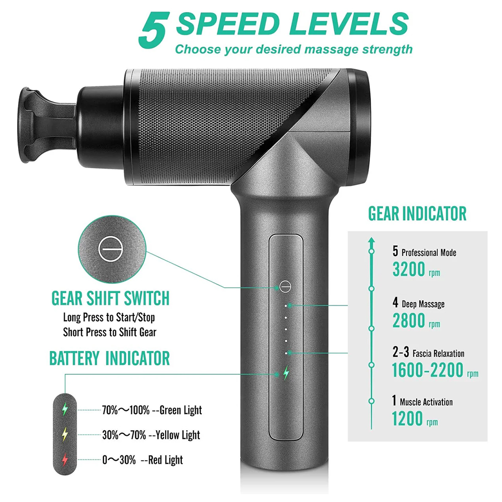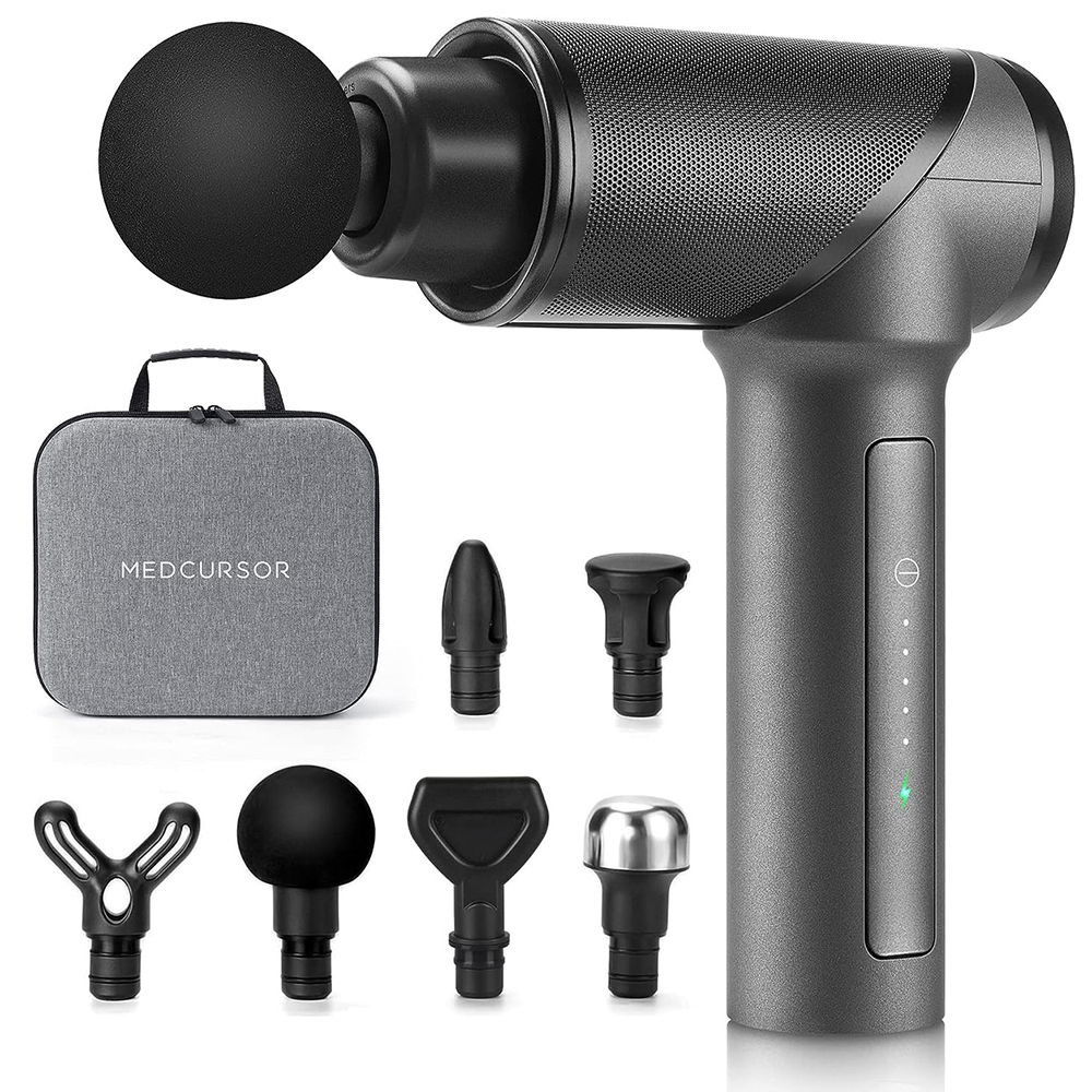 Aparat de masaj Medcursor Nekteck (A03- MG01-GYRU) - Wireless, 6000mAh, 5 Speed Levels, 6 Replaceable Massage Heads