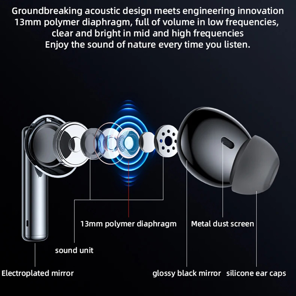 Casti wireless Yesido TWS23 - with Noice Cancelling, Touch Control, Bluetooth V5.3, In-ear Design, 300mAh - Black
