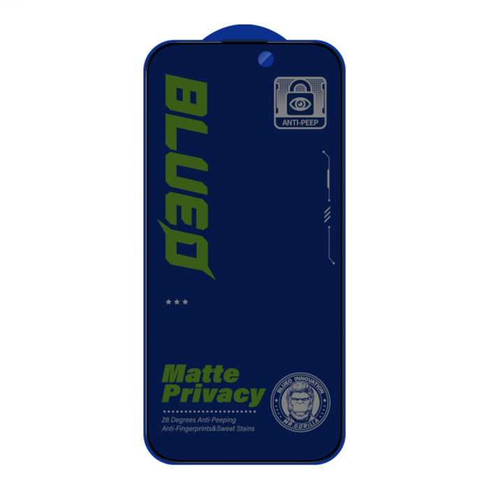 Blueo Folie sticla iPhone 15 / iPhone 16 Blueo - Anti-Peep Privacy Glass Matte Black